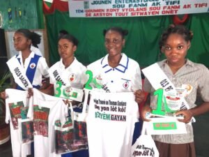 Premye ganyan konkou literè Bèlyeniz Jan Batis se elèv ki genyen kòd 0013, Nehemie Jérôme, genyen yon total 567 pwen, li soti nan lekòl – Petit Seminaire Collège Saint- Matin de Porres nan nivo NS3. Li resevwa yon pri : 35 000 goud + kit + plak. Dezyèm ganyan konkou literè Bèlyeniz Jan Batis se elèv ki genyen kòd 0022, Lose Carina Mogelin, li genyen yon total 536 pwen, nan nivo NS4, li soti nan Collège Sacré Cœur de Papaye. Li resevwa yon pri : 20 000 goud + kit + plak. Twazyèm ganyan an se elèv ki genyen kòd 006, Yolda Lunscie Raphaёel, li genyen yon total 530 pwen, nan nivo NS3, li soti nan Collège Sacré Cœur de Papaye. Li resevwa yon pri : 15 000 goud + kit + plak. Lòt de (2) yo, se prim konsolasyon : elèv ki genyen kòd 0015, Louis Anne Doris, li fè yon total 507 pwen, nan nivo NS3, li soti nan Collège Sacré Cœur de Papaye. Li resevwa yon pri : 7500 goud + kit. Kòd 003, Cené Garyson, li genyen yon total 478 pwen, li soti nan lekòl – Complexe Éducatif du Sacré Cœur (CESC), nan nivo NS4. Li resevwa yon pri : 7500 goud + kit. Lafanmi Jean-Baptiste te kontan rekonpanse senk (5) gayan ki ranpòte pri dezyèm edisyon konkou literè Bèlyeniz Jan Batis. Chak elèv sa yo vin anbasadris ak anbasadè dezyèm edisyon an.